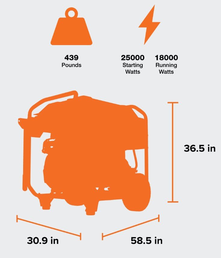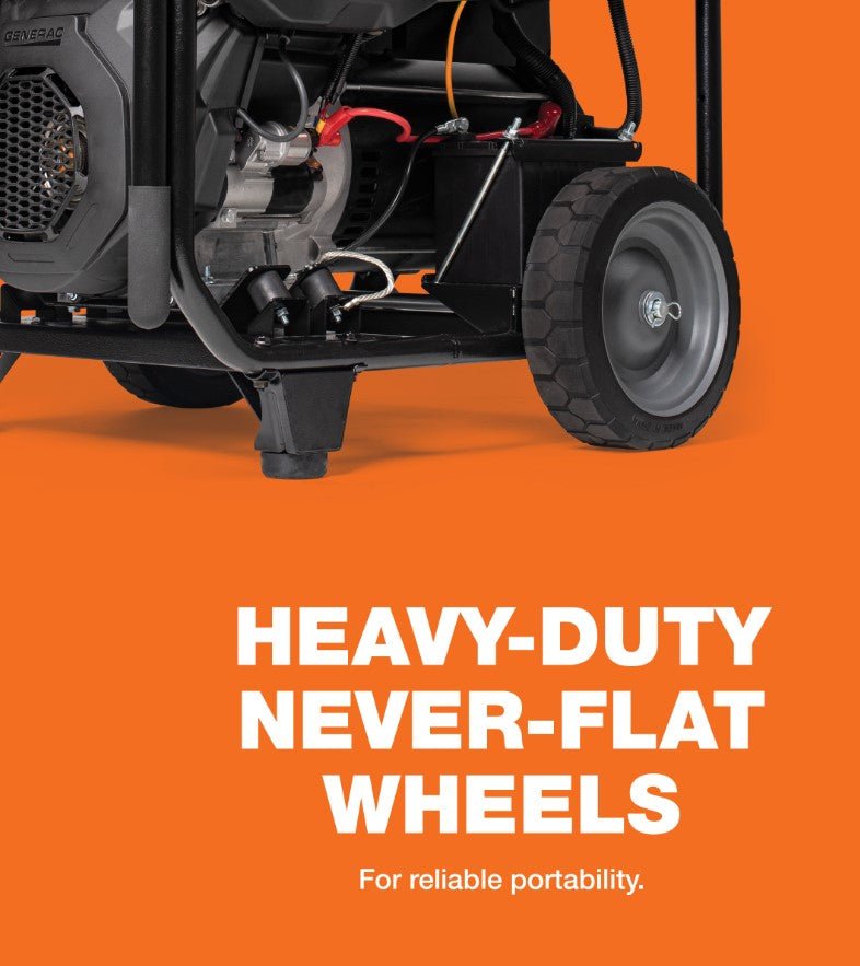 The GP18000EFI also features electric start (battery included), low-oil shutdown protection, circuit breaker protected outlets and an hour meter with maintenance resets. The included never-flat wheel kit and available lifting eye accessory make transportation easy around the home or jobsite.